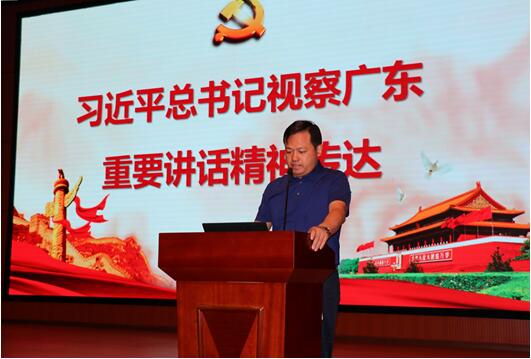 廣東騰越黨總支副書記、常務(wù)副總經(jīng)理鄧培初傳達(dá)《習(xí)近平總書記視察廣東重要講話精神內(nèi)容》