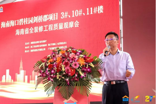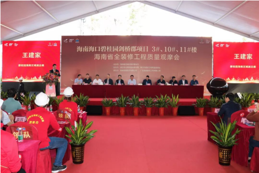 據(jù)悉,此次觀摩會旨在深入貫徹落實《國務(wù)院辦公廳轉(zhuǎn)發(fā)<住房城鄉(xiāng)建設(shè)部關(guān)于完善質(zhì)量保障體系提升建筑工程品質(zhì)指導(dǎo)意見>的通知》(國辦函[2019]92號)和《海南省商品住宅全裝修管理辦法》工作要求,進一步發(fā)揮建筑施工質(zhì)量及安全生產(chǎn)標準化示范工地的示范引領(lǐng)作用,積極引導(dǎo)各項目開展質(zhì)量及安全生產(chǎn)標準化工地創(chuàng)建,提升海南省工程質(zhì)量安全,進一步推進全裝修工程質(zhì)量工作。啟動會上,廣東龍越執(zhí)行總經(jīng)理鄧培初代表承辦單位對海南省、市各級領(lǐng)導(dǎo)長期以來對廣東龍越的關(guān)心和支持表示衷心的感謝,并從“標準化設(shè)計、工業(yè)化生產(chǎn)、裝配化施工、成品化裝修、信息化管理”等五大方面全面介紹了廣東龍越“施工總承包管理”及“全裝修管理”。一直以來,廣東龍越始終堅持走質(zhì)量效益型發(fā)展之路,積極響應(yīng)政府號召,大力推廣運用新建造體系、BIM技術(shù)、裝配式建筑和打造智慧工地,深入研究創(chuàng)新裝配式建筑施工技術(shù),通過綜合應(yīng)用鋁模、爬架、PC構(gòu)件、全穿插施工等一系列四新技術(shù),形成了一整套優(yōu)質(zhì)高效的建造技術(shù);建立健全了“設(shè)計一采購—施工”全產(chǎn)業(yè)鏈的EPC服務(wù)模式,承接了一批學(xué)校、安置房等有影響力的公建項目和政府工程;公司擁有自己的自動化PC制造工廠和設(shè)計管理團隊,具備“深化設(shè)計一PC制造一裝配式施工”一體化競爭優(yōu)勢。