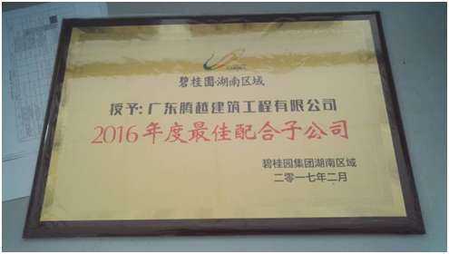 初夏的三湘大地,青色濃郁,催人奮進(jìn)。在這個萬類競綠、一片繁茂的時節(jié),廣東騰越湖南分公司從碧桂園湖南區(qū)域接過“最佳配合子公司”、“2016質(zhì)量標(biāo)桿總承建單位”兩塊“沉甸甸”的獎牌。