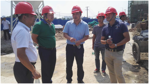 頂著烈日,鄧培初總陪同湖南區(qū)域副總裁周文理先生視察常德項目施工