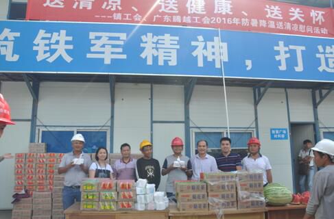 送清涼活動(dòng)是公司及工會(huì)組織貫徹落實(shí)以人為本,關(guān)心員工生活,促進(jìn)安全生產(chǎn)的重要舉措,目的是為了確保廣大施工人員的身體健康,安全生產(chǎn)。一直以來,廣東騰越工會(huì)緊跟北滘鎮(zhèn)總工會(huì)、集團(tuán)工會(huì)發(fā)展步伐,積極參與各項(xiàng)公益活動(dòng),從2016年1月“愛心大巴送農(nóng)民工回家”到5月“精準(zhǔn)扶貧,助學(xué)筑夢(mèng)”,再到今天的“為夏日消暑,送清涼暖心”,每一項(xiàng)公益活動(dòng)背后都飽含騰越愛心與用心。