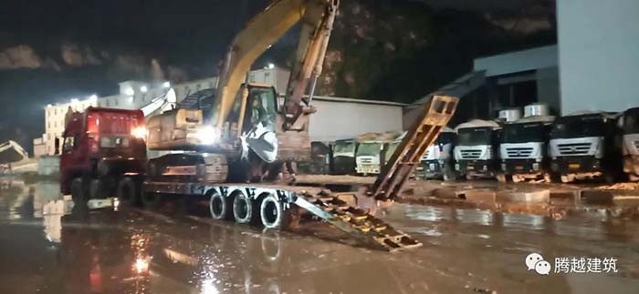 騰越建筑援助挖掘機等救援機械