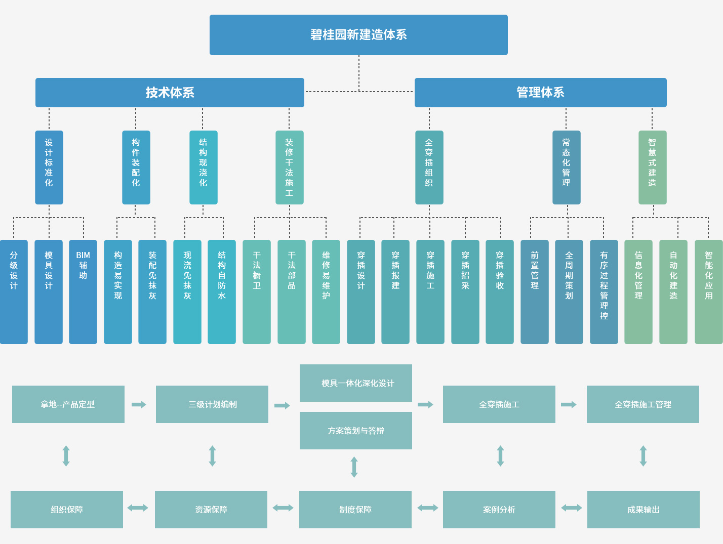公司擁有成熟的新建造體系,遵循“安全共享、科技創(chuàng)新、綠色可持續(xù)、優(yōu)質高效”的四大核心理念。在綜合效益不降低的前提下,通過不同技術體系和管理體系的組合,提升產(chǎn)品品質、縮短建造周期,達到精品質、快速度、高效益的目的,實現(xiàn)綠色節(jié)能環(huán)保、多方共贏。